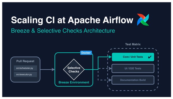 A deep dive into Airflow’s CI: Docker for reproducible environments, Breeze to unify local and CI workflows, and Selective Checks to run only the tests that matter.